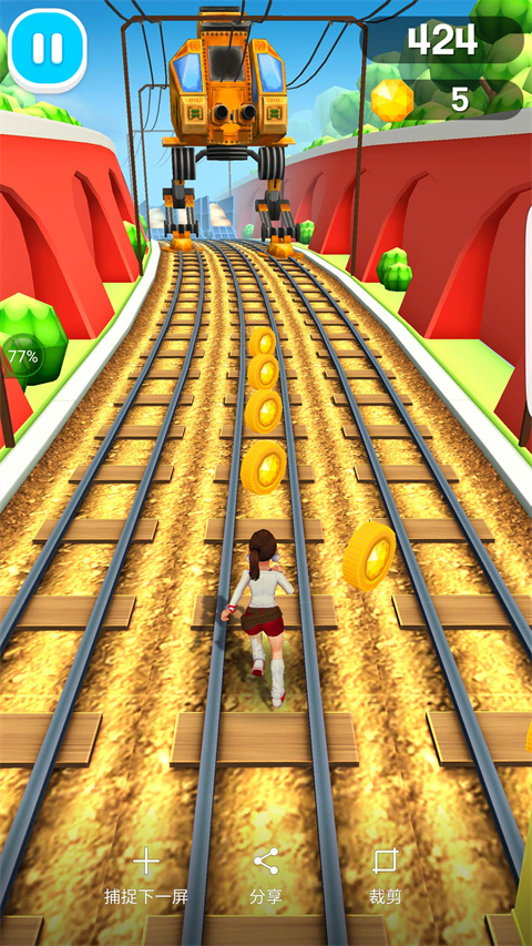 3.道具系统多样:火箭、磁铁、气垫滑板、双倍积分等道具随机掉落或手动激活,关键时刻能救命。